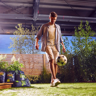 Voor Thomas Müller is één ding duidelijk: een tuin moet uitnodigend zijn – en dat begint bij het gazon. "Voor mij is een mooi gazon gewoon een must. Het liefst eentje waar je op blote voeten kunt lopen en waar het echt leuk is. Niemand wil in een modderplas of tussen het onkruid stappen", aldus de wereldkampioen voetbal.